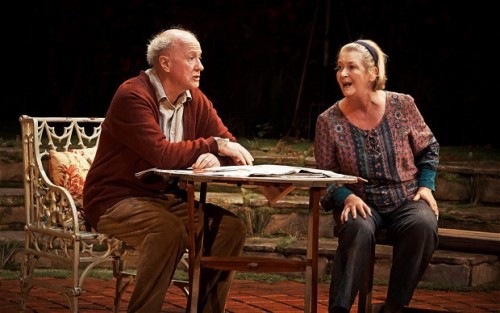 On our first visit to the venerable Abbey Theatre we sat contemplating the brick terraced, curving garden (evocatively designed by Denis Clohessy with nuanced lighting by Joan O'Clery) conveying the title of the Frank McGuiness play, The Hanging Gardens, his first new production in 14 years for the company.
