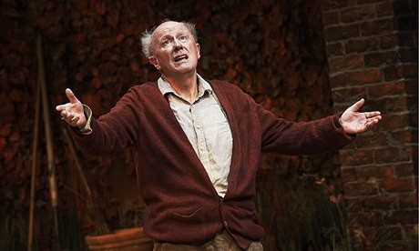 An elderly man in pajamas, Sam Grant played with stunning conviction by the renowned Niall Buggy, enters and stands at center stage. He is suddenly drenched by a downpour.