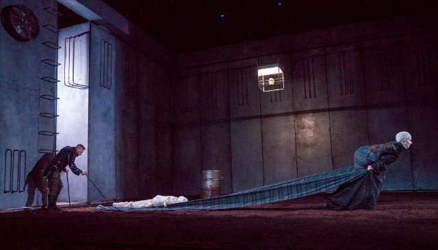 Richard immediately addresses us, not as audience, but as the residents of England as the War of the Roses creeps to an end amidst incalculable bloodshed. The sets by Francis O'Connor are very tall, suggesting royalty. They are a dark grey, occasionally opening on an increasingly hopeful green landscape suggesting peace between the Lancasters and Yorks.