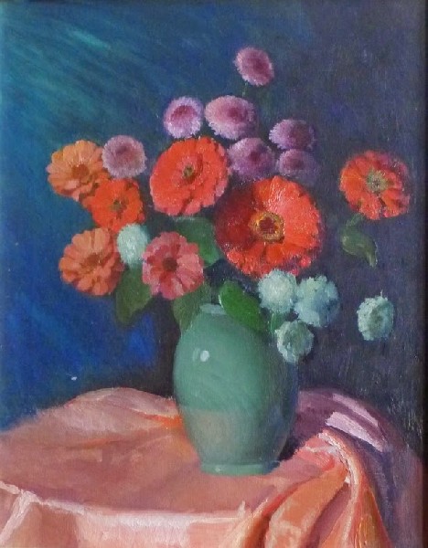 Stylistically his best portraits showed the influence of the Ashcan school, especially when he was free from having to flatter the subject, as in his portraits of his parents. On Askart, a site that lists artist's auction history, he is noted for “floral still lives”. Indeed, our immediate family is in possession of many of them. To my eye it is in these works that the aesthetic of Marvin shines. Each bloom is delicately and never generically observed. There is a feeling of tenderness for each bloom, which must be cherished and not harmed. Although his work may be lacking in any dialogue with the dozens of “isms” that ruled the 20thc and remained within the language of chiaroscuro, which he learned from his idol Sargent, there is a sensitivity to presence. It just sings out the fragility and nuance of the moment, the exact instant of apperception.