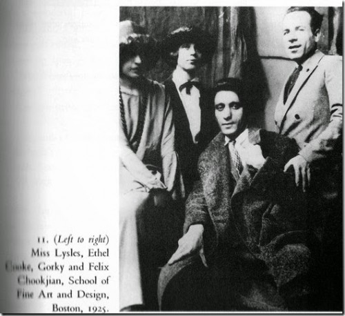 The date is 1920. He came back from Paris in 1922 and presumably started teaching there, where as Marvin claimed, he had Gorky as a student. There is also a photo of Marvin from 1925 that was in the possession of Marvin’s sister (my grandmother) wearing what appears to be the same suit worn by Felix in the photo of Gorky. I have shown numerous people the two photos side by side and no one has doubted that Felix is Marvin. The difference in spelling of the last name does in no way discount my theory that the Gorky photo is of Marvin as Armenian names were transcribed phonetically and were subject to various spellings.