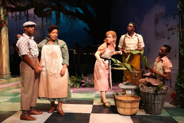 In their refurbished home on West 22nd Street, the Irish Repertory Theatre mounts a lovely production of Finian's Rainbow, full of good humor, even farce, as members of a Southern community, where black and white people live comfortably together, cooperate and treasure one another's company. The treasuring is enhanced by a pot of gold.
