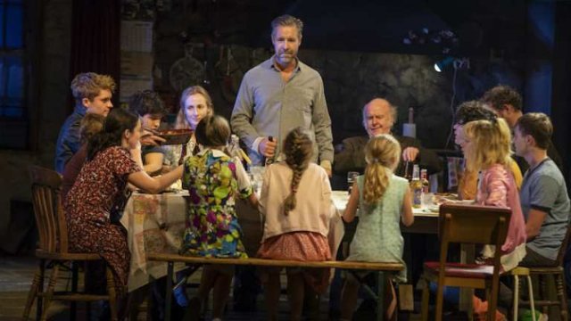 The Ferryman requires a master director because it’s a deeply layered play with a cast of 22, which includes several children. Its background is the story of the hunger strike by Republican prisoners during the Troubles in Northern Ireland in 1981. Quinn Carney (Paddy Considine), a reformed IRA activist, and his ailing wife Mary (Genevieve O’Reilly), have a large brood of children of their own. His sister-in-law Caitlin (Laura Donnelly), widowed because Quinn’s brother disappeared after Quinn defected from the IRA, also lives with them, with her son Michael (Fra Fee). Several relatives of the senior generation also live in the Carney farmhouse in County Armagh, so we can appreciate the humor of Uncle Patrick (Mark Lambert), the radical political rants of militant Aunt Patricia (Dearbhla Molloy) and the occasional dreamlike stories of Aunt Maggie Far Away (Fionnula Flanagan). Tom Kettle (Justin Edwards), a simple handyman, visits with a rabbit in his pocket and reminds one of Lenny in Steinbeck’s Of Mice and Men. And yes, there’s wild life on stage: rabbits, a goose and even a baby. (Well-behaved on the night I saw the play, but I would think most directors would prefer to cast a wrapped doll-figure). There’s sexual and romantic tension between Quinn and Caitlin too.