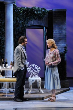 Another absolutely wonderful performance of two distinct but very strong characters is by Rene Augesen who portrays Eleanor in the first act and Esme in the second act. She is astounding in the texturing of the two women. She is almost unrecognizable as the same actress in the two strong roles. Her performance is subtle and yet layered as the sympathetic, dying, Eleanor and the sad, but hopeful, older Esme. Bravo.