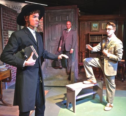 Drew Feldman as young Reuven, a mathematics whiz, may be a young actor (23) but his performance speaks volumes for his interpretation of a loyal but conflicted friend when “the rubber meets the road” and it comes time to honoring one’s parental advice versus friendship. It’s a sensitive and compelling performance. And the same can be said of Daniel Seigerman’s Danny Saunders’ portrayal. Danny has a photographic memory and harbors a secret desire to become a psychologist, like his hero Sigmund Freud. In Danny’s case, the pressure to be and become his own person vs. what his Hasidic, traditionalist “tzadik” father expects – that of following in the tradition that the oldest son must become the congregation’s spiritual leader – has been gnawing at him for two years. It’s a career path Danny does not want to follow. Seigman’s understated performance vs. Feldman’s outgoing portrayal makes their scenes together most compelling, relevant, and entertaining.