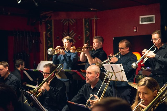The evening featured well established and renown jazz musician John Fedchock on trombone, along with award-winning bass trombonist Jennifer Wharton, and Inserto’s backbone trumpet and saxophone section that were in-sync and note-clean from her first conducting hand signal.