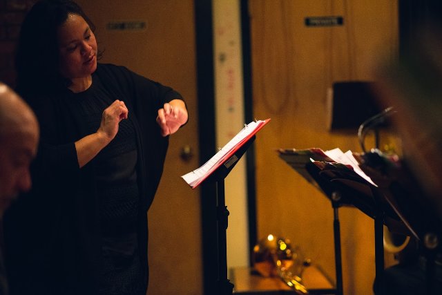 Each piece was a part of a compositional story, with a carefully chosen conceptual framework. Inserto’s inspiration for the title composition, came directly from her muse and heart, drawing inspiration from Lewis Carroll’s Alice’s Adventures in Wonderland (one of her husband’s favorite books). It is a remembrance of the period of time they were dating, and she fell in love. In her pre-release performance at NEC in March she explained her influence, “The Brookmeyer techniques I used for this piece were a combination of the pitch module and white noise exercise.” It delivers a “musical cyclone”, as Inserto’s lively conducting compliments spirited horn solos and some frenetic, fast-paced tempos that add to the beat that drives this piece.