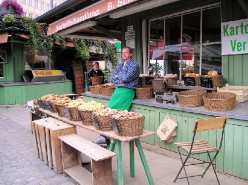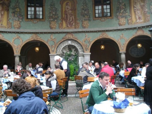 Munich's charm goes beyond its art and architecture. The Bavarian way of life, eating and drinking well, means that the city is permeated with beer gardens, cafes and restaurants. Schwabing is an attractive district of boutiques and galleries. We had a refreshment break in an outdoor café, which offered red blankets to keep the autumn chill away. Our gastronomic highlights included a walk through the Dallmayr, an old coffee processing factory turned into a multi-story luxury delicatessen, the Viktualianmarkt or outdoor produce market, and the city's famed beer hall, the Augustiner Brau. The variety of pastries at Café Sienna on the top floor of Kustermann department store was a treat for both eyes and mouth. The apple cake with poppy seeds served with cream was delicious.