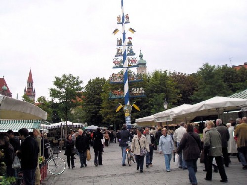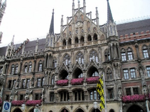 The following morning I took one of the two Hop-On Hop-Off tours to discover Munich from a double-decker bus. My hour-long tour, the Express Circle, showed the highlights of the city, starting off at the Hauptbahnhof (Main Train Station). We passed by the Pinakotheken (Painting Galleries) and stopped at Max-Joseph-Platz to view the National Theater built by King Max Joseph. The façade of the theater is adorned with a Pegasus mosaic, which symbolizes art and literature; a statue of the King sits in front. Passing through the exclusive shopping street, Maximillian Strasse, we continued on to the Marienplatz, a cobble stoned square closed to traffic and the center of the city's social life.