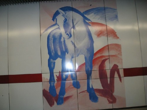 The international reputation of the Lenbachhaus, the villa that was formerly the residence of painter Franz von Lenbach, is based on its unique collection of works by the "Blue Rider" (Blauer Reiter) group, who split up from traditionalists to promote a multiplicity of expressions as opposed to a particular form of objective art at the turn of the twentieth century. The city owns the Tuscan-inspired villa and its major collections, donated by the artist's widow, as well as painter Gabriele Munter's collection of ninety oil paintings, many watercolors, drawings and sketchbooks by her longtime companion, Vassily Kandinsky. In addition, the galleries feature works by 19th -and 20th -century artists due to the city's substantial acquisition budget, which extends to contemporary art. A replica of Franz Marc's "Blue Horse" graces the underground metro station near the museum.