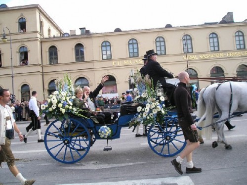 It was a wonderful coincidence to be in Munich during Oktoberfest; the city's famed festival, which welcomes autumn. Started in 1810 in honor of the marriage between Bavarian crown prince Ludwig and Princess Therese, the festival was prolonged in following years and moved forward for better weather; now the two-week festival takes place in the latter part of September and swells the city's population to over six million. Huge tents are pitched on the Theresienwiese (Therese's Meadow); the mayor of Munich taps the first keg of beer to open the festival.