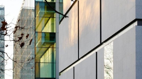 Starting on the outside, Lord Foster and his staff wanted to honor the Guy Lowell structure, not overwhelm it. Their approach was to create a new addition that was contemporary but restrained. Though not at all ghost-like, the Art of the Americas Wing clad in thin steel siding and glass is partially translucent as well as partially transparent.