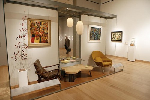 At the entrance to the new wing's 53 galleries, there is a contemporary processional staircase. Elegantly wrought, these stairs are similar to many other major museums large monumental staircases that seem to disregard aging populations. Each of the four floors of galleries is separated into a distinct period of Art of the Americas' works ranging over 3000 years and two continents. Just as the art differs, the galleries reflect differences and focus as well through the sensitive use of construction materials, spatial relationships and lighting.