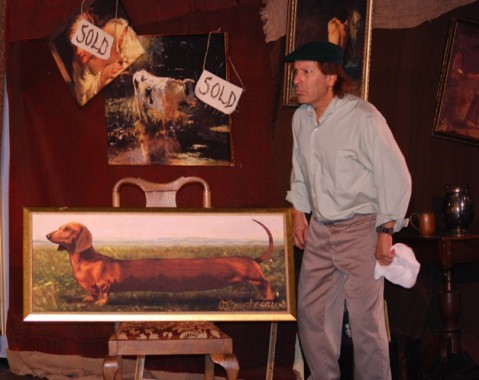 There isn’t a weak link in this company of players, and they are the reason that makes this production so enjoyable. “Farce appreciation”, however, isn’t one of the American theatre-going public’s favorite formats; and that’s a pity. When farce is done properly; with energy, gusto, and flair, as in this production, the effect is just as satisfying as in any manic comedy production, only more so. “Is He Dead” brings to mind the comedy farces of master playwright Alan Ayckborn, (often referred to as the Neil Simon of the English theatre, or is it vice-versa?) and his plays “The Norman Conquests” and “Bedroom Farce”, to name just two of more than 50 of his plays. In my humble opinion, English playwright Michael Frayn, penned one of the funniest plays ever, in his comedy/farce “Noises Off”, a story about the theatre and what goes on backstage during a production.