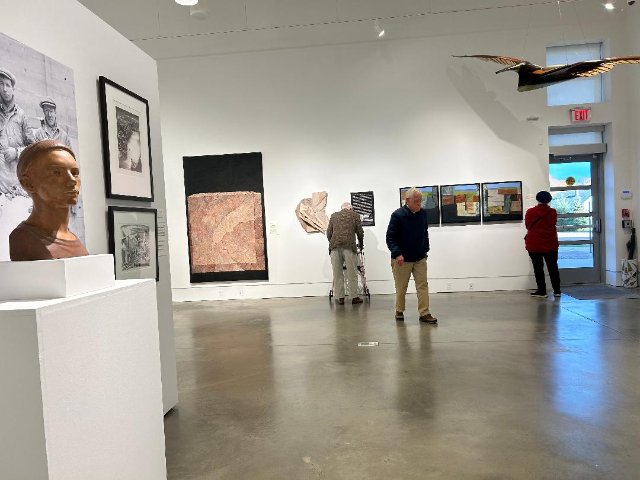 That is conveyed in a mix of bronze busts by such eminent sculptors as Walker Hancock and George Demetrios. Hancock depicts young boys while Demetrios had an eye for his ethnic neighbors who worked the quarries. There were representational landscapes and portraits as well as prints. There are intervals of engaging with photo murals of the ruddy workers and the now rusty tools of their abandoned trade. In vitrines we see such vintage items as union badges and account books.