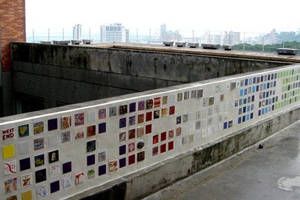 A more recent installation was "The Tile Project: Destination the World" which included work by artists from: Azerbaijan, Bosnia and Herzegovina, Canada, Finland, France, Germany, India, Israel, Mexico, New Zealand, The Philippines, Romania, South Africa, South Korea, Spain, Taiwan, Turkey, USA, Vietnam and Wales. During her time in Taiwan last summer she designed and published a handsome boxed catalogue with an individual reproduction, in postcard format, for each tile with information about the artist. It was published as an edition of a thousand and a copy was presented to each participating artist with the remaining copies for sale at $24.95 through http://www.transculturalexchange.org