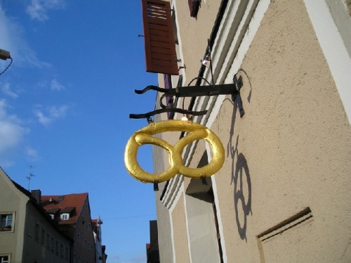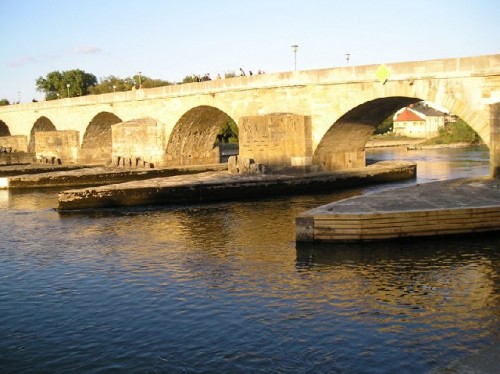 Regensburg, whose name means "Rain Castle", is an old city on the Danube River. The city is an open museum of historic buildings within walking distance of each other. The stone bridge over the Danube was constructed in 1135-1146. We had lunch at the Wurstkuchl, which claims to be the world's oldest sausage house. Located near the stone bridge, it has been in business for over five hundred years. I had Nurnberger Bratwurst or Nurnberg-style sausage, which consists of many small sausages served traditionally with sweet mustard and kraut.