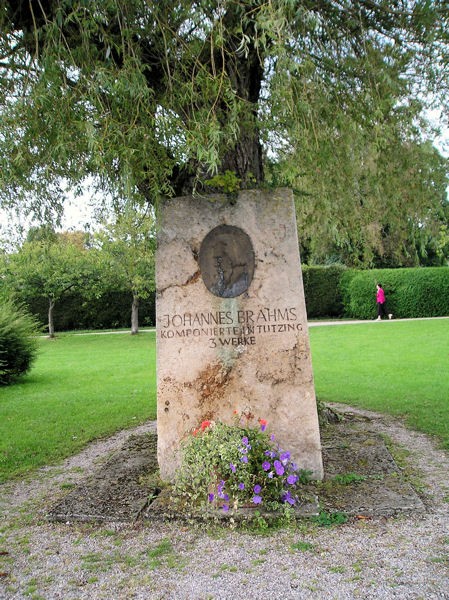 Alpine foothills are within driving distance of Munich and offer panoramic scenery of lakes and mountains dotted with charming towns. Our first drive was an afternoon excursion to Starnberg on the Starnberger See (Lake), 20 km. south of Munich. On the way there, we passed by Tutzing, where Brahms composed three pieces. A stone relief of the composer's head sits in the shade of a tree by the road.