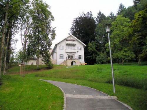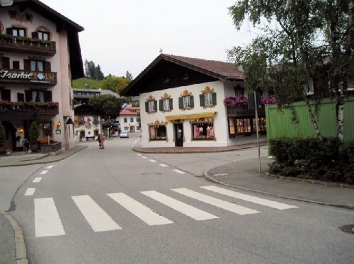 From the heights of Glentleiten, we descended to Lake Kochel to visit the Franz Marc Museum in Murnau, a market town in the Alpine foothills of Bavaria. Attracted by the vibrant light of the area, Franz Marc came here to paint and was later joined by Kandinsky, Munter, Jawlenski and Werefkin. They painted here together and became the focus of artistic innovation, leading up to the "Blue Rider" movement from 1908 to 1914. Simplified forms with black outlines characterize their bold graphic-style painting. They rejoiced in painting flat areas filled with explosive, brilliant colors. Marc died in Verdun in the war in 1916. His house is now a museum with a terrace for coffee.