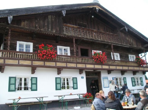 The excursion to the Glentleiten Open Air Museum, high above Lake Kochel, introduced us to the way people in the area lived 100-200 years ago. Fifty original homes from Upper Bavaria have been transferred here over an area of 25 hectares, where farmers drove their animals to pasture in summer. Wooden houses with shingle roofs and picket fences showed the dwellings of farmers, day laborers, craftsmen or miners. The picturesque shingle roofs, held down by rows of rocks to hold back snow, were reminders of the harsh winters. In addition to coal- or wood-burning ceramic stoves, the severity of everyday life was demonstrated by stables, barns, granaries, baking and drying houses.