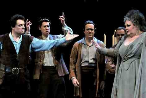 On the face of it casting Frank Lopardo as the King was a way to provide a solid center to the production. Even though his performance on Thursday was prefaced by an announcement that he had stomach flu, Lopardo was much more than rock solid. If this is a Lopardo handicapped, one wishes to hear him set free. His lovely lyricism had a spinto edge which seared through the orchestra. He was very much Radvanovsky’s match. (We have seen male superstars totally swamped by this extraordinary soprano. She is generous, but her voice naturally would fill the Roman Coliseum).