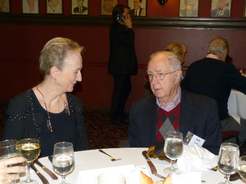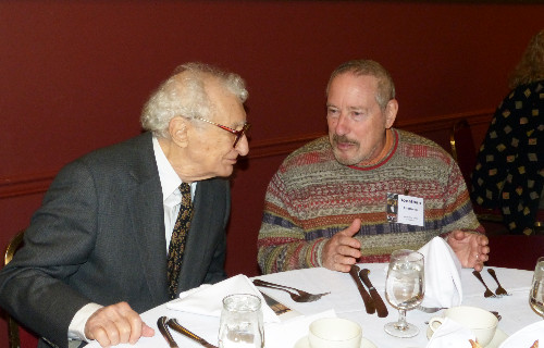 Amazingly, the ninty-something Sheldon Harnick writer of musicals, including “Fiorello!” (Tony and Pulitzer winner), “Fiddler on the Roof” (Tony), “She Loves Me” (Grammy) and other shows in collaborations as well as solo, attended the luncheon. There was a hush in the room when he was introduced by former ATCA president, the Chicago critic, Jonathan Abarbanel.