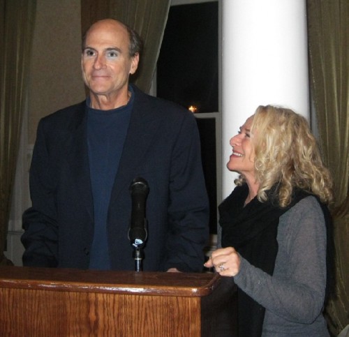 Well, surprise. The audience bolted out of their seats with enthusiasm and applause to greet James Taylor and Carole King who made an unannounced appearance at the pre Thanksgiving event.