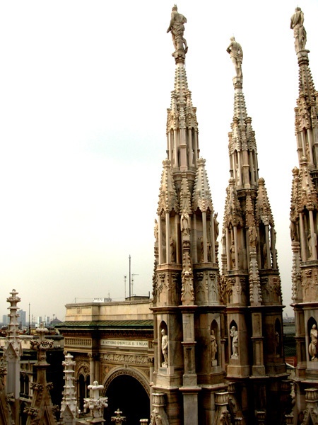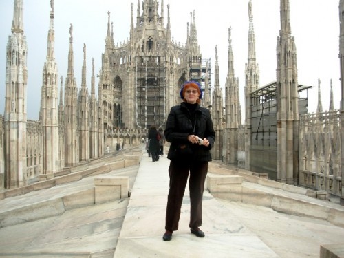 Back in Milan there was a final day to explore the city and we chose to return to the Duomo. We discovered that the rooftop was open to visitors and decided to walk up the nearly 200 steps. By now, we were in good shape having been on our feet for five to six hours daily. What an exquisite site! The architecture, art and artisan's works and labor contemplated at this height is a sheer marvel. The visitors are free to walk all over the roof, which is made of thick marble plates, and further explore up and down stairways to search out another level, small towers, and corners. Cameras all around us were flashing furiously and we joined in the activity to photograph the cathedral's roof and the city beyond. The rooftop visit remains more vivid, than the experience inside, one of many architectural and artistic wonders that we enjoyed on this trip.