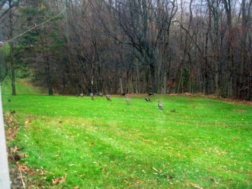 From my basement studio window there is a wonderful view of Mount Greylock, the highest peak in Massachusetts. Which, by the way, is named for a Native tribe the Pilgrims encountered when they settled here. There are none of the tribe remaining. Sometimes I am startled to look up and see a turkey walk by. They come within inches and generally I frantically look for my camera. There is a group of eight and we have been watching the growth of the little ones wondering if they will be big enough to endure a harsh winter in the woods. They seem quite used to a human presence as they wander about foraging for food. But if you try to approach they will scatter rather quickly.