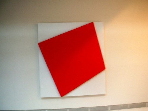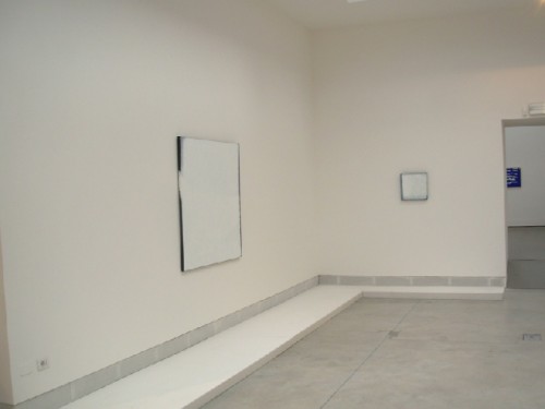 Then there is the matter of installation. In general, Europeans appear to favor natural light of medium to low intensity. So the illumination in the exhibition proved to be of such cool and low intensity, particularly during the overcast fall week when we visited, that subtle works like the white on white paintings of Ryman, or the monochromatic geometric shapes of Kelly, the dark on dark paintings of Polke, and the chicken scratches on canvas by Richter proved to be all but invisible. Even if one took the trouble to adjust to the crappy lighting. For myself, I prefer to view paintings when they are blasted with tungsten which is the norm when visiting galleries intent on selling the work. Once a work is sold curators want to conserve it for the next millennia which means that they don't let you actually see it.