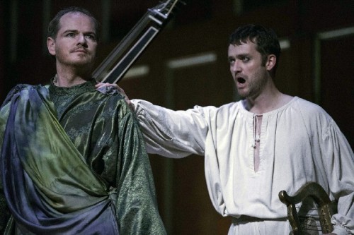 In terms of beauty of voice, Sheehan was matched by bass-baritone Douglas Williams as Charon, whose low, resonant but fluent voice sent shivers up the spine. It would indeed take a demi-god to get past him. As La Musica and Euridice, Mireille Asselin sang with a sweet and light soprano. As mentioned, as the messenger of bad news, Silvia, soprano Shannon Mercer sang with chilling effect. Among the shepherds, tenor Jason McStoots sang with beautiful tone and declaimed the text with extraordinary enunciation. As a shepherd, tenor Charles Blandy sang expressively especially at the end of the first act in a touching duet with McStoots. As a nymph and Proserpina Teresa Wakim brought her expected sensitive soprano to the roles, although her aria advocating for Euridice’s release to Orfeo was a little underpowered. As Pluto, bass-baritone Olivier Laquerre lacked the gravitas the role asked for. As Speranza (Hope), countertenor Ryland Angel was the one major disappointment. His high notes were sweet and clarion, but he sounded insecure through most of his range.