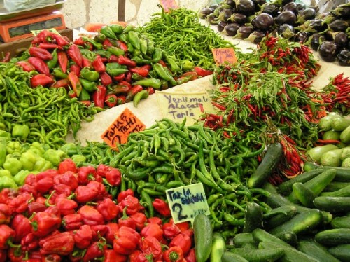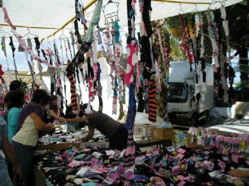 My final day in Alacati coincided with the Saturday farmers' market, which, in addition to local produce, offered clothing and household goods at very modest prices. Wending through a riot of color and cacophony, my purchases ranged from Kalamata olives and dried sour cherries to bath and kitchen towels, cushion covers, a pair of pants and a shirt.