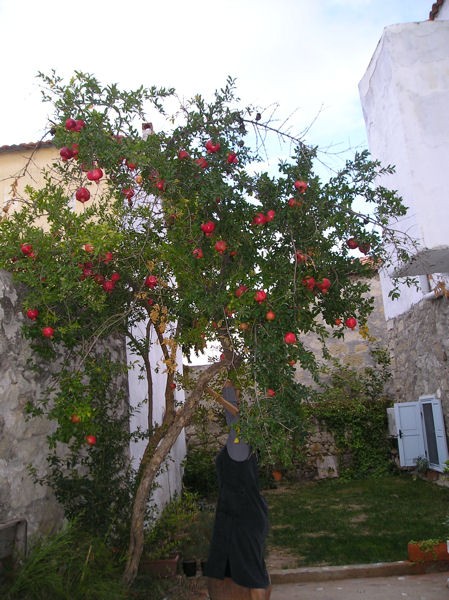 The next morning I went up to the roof terrace to enjoy the surrounding view. The panorama was an endorsement for the picturesque town. A cluster of white buildings with red-tiled roofs nestled against low hills in the distance; a minaret pierced through olive trees. Nearby ripe red pomegranates beckoned to be picked. I descended to the garden to pick a few big ones to carry to Istanbul.