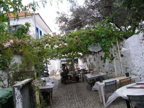 In the evening we drove to a fish restaurant in Ilica, a resort town known for its thermal springs. At Yusuf's Place, we enjoyed turbot and salad, preceded by cold and warm appetizers, such as marinated dried tomatoes, sardines, fried eggplant and peppers with yogurt, and calamari. Although full, we complied with the Turkish tradition of finishing a fish meal with halvah to aid digestion. When we returned to Alacati around 11pm, the streets were filled with people; vendors crowded the sidewalks with corn on the cob, steaming in big kettles; cafes and pudding shops attracted passers-by with mastic-flavored specialties, including coffee. Mastic is plentiful in the region; much of it comes from the Greek island, Chios, 400 meters from the shore.