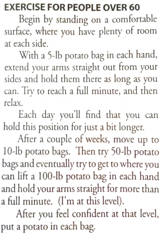 Start with a five pound potato sack in each hand. See the accompanying illustration.