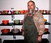 From this free thinking emerged the idea for the "Ticket Bowls." It represented his "First foray into selling work. I was making more and more of them. Giving them away. Then it occurred that I should document them and I bought a digital camera. While in the process of learning to use the camera I searched the internet and stumbled onto my favorite gallery, The Gallery of Functional Art, in Santa Monica http://galleryoffunctionalart.com/jewett.shtml . By then I had a number of images saved on the computer and before I could chicken out I sent some pictures to the gallery. Within five minutes there was a reply that they wanted me to bring in some work to show them. They just happened to be checking their e mail. I was excited and frightened. Lois Lambert owns the gallery and I started showing with her."