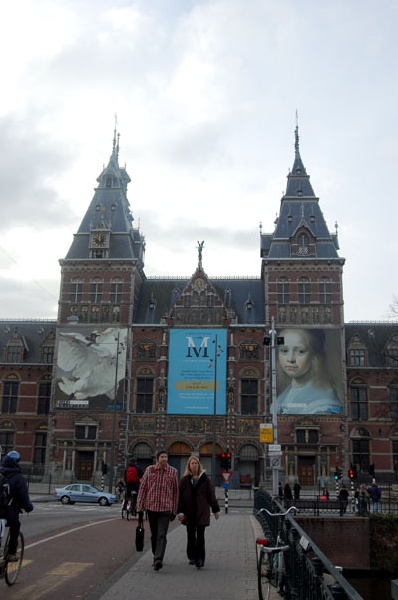 Our first cultural institution visit was to be to The Rijksmuseum. The Rijksmuseum is the largest museum in the Netherlands, with more than a million visitors each year. The Rijksmuseum is an impressive Amsterdam landmark and possesses an unrivalled collection of Dutch art, from early religious works to the masterpieces of the Golden Age. Several Rembrandts including the huge "Night Watch" and four Vermeers are included in the collection. Under renovation, enough of the permanent collection was on view that we both felt very satisfied by the experience.