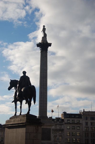 I then walked around Trafalgar Square and Leicster Square. I picked up half price tickets to "Shadowlands," a play about children's book author C.S. Lewis and his lover/wife Joy Gresham. It is a sad, poignant story. Actor Charles Dance and Janie Dee were in the version that Evan and I went to see at Wyndham's Theatre next to the Leicster Square tube stop. I took pictures of a bad piece of public art at Trafalgar Square. I tried to eat at the National Portrait Gallery restaurant, but there were no window seats, and the staff acted rather rudely. That's another story for another time. I went to a couple of art book stores to browse and picked up a beautifully produced Italian architecture and art magazine, Domus. This was after I tried to visit London's Institute of Contemporary Art which had no current exhibits. I guess that it has become a performance/film space. The Royal Academy was closed until January when it will be showing a major exhibit from the Hermitage Museum in Moscow. The Tate Modern had shows that I had already seen in the states. So much for art in London in November. At least, I thought this at the time.