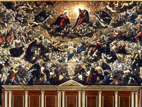 It wasn’t until I visited the Doge’s Palace in Venice and came face to face with “Paradise,” Tintoretto’s large painting that hangs majestically in the Ducal Hall, that I discovered that Tintoretto was still alive. Here he was, some 400 years later, looking down at me looking up at him. I didn’t have to read the painting’s label which no doubt listed the artist’s name, the title of the painting, and the date it was executed. I didn’t have time. I was pulled right past the words into the heart of the matter. Communication was instantaneous. I knew immediately that this seething mass of humanity, posing as saints and angels on canvas, all 23 by 72 feet of it, was transmogrified flesh. Tintoretto’s.