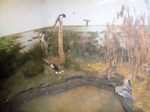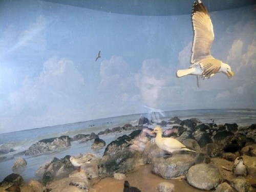 The Bay of Somme has vast skies and expanses of open water, marshes, dunes and saltwater meadows, which create a landscape of monochromes in gray, beige or white. Harbor seals mix with birds. The Bay is the largest estuary in northern France. At the heart of the bay's nature reserve is Marquenterre Bird Sanctuary, a favorite stopping place for thousands of migratory birds. Bracing sea air and rain kept us from viewing the colony of seals. The local guide we had contacted recommended that we visit La Maison de l'Oiseau, an ornithological center for learning, seeing, and hearing the bay's flora and fauna. We viewed stuffed animals in simulated action in their natural habitat in large, beautifully laid out glass cases. To this observer they were absolutely life-like; a bird in simulated flight looked no different from one in the open sky.