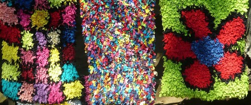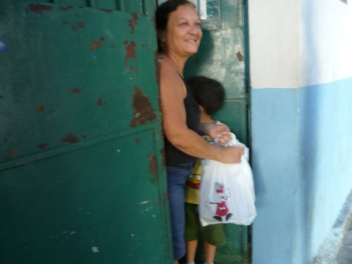 Following our descent from Sugarloaf Mountain, we visited the neighborhood of Morro dos Prazeres. As we walked uphill, a youth project consisting of painted bricks stacked like houses against a wall welcomed us to the favela. Such creative projects are designed to keep young people off the streets and out of trouble. Across the street from the colorful wall, an artist sold works he had created out of recycled materials, including cell phones. He had several stalls stacked with his art — toy trucks, planes, dolls, portraits, and the like. I bought a portrait of his own family, depicting a white couple with an adopted black son, as I wanted to support the creative energy that pours out of the favelas.