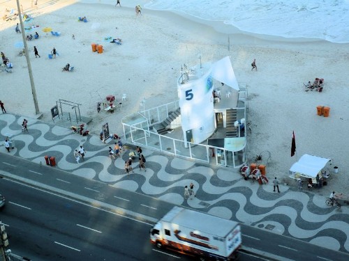On the way back to Copacabana, we drove along the beaches, which provide an escape for the urban masses, squeezed close together into high-rises between the mountains and the Atlantic. We stopped for coconut water at a beach stand, watched people hang-gliding, and settled down for lunch with an ocean view. Later Celine took us to the roof terrace of a luxury Windsor hotel for a sweeping view of the ocean and mountains, as well as a bird’s-eye view of the famed serpentine mosaic sidewalk by Brazilian architect Oscar Niemeyer.