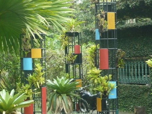 An exhilarating day trip took us to Barra de Guaratiba, where the Sitio Roberto Burle Marx — the house and garden of the late great landscape architect (1909-1994) — is located. Burle Marx’s botanical collection, considered a part of Brazil’s cultural heritage, comprises more than 3500 plant species. His use of varied textures, unusual plant groupings, and chunky rocks around an old restored farmhouse and a 17th-century chapel transmits a legacy of landscape gardening. Also a painter and a ceramic and textile artist, Burle Marx produced many works of art, in addition to embarking on many adventures, where he found items for his collections, including old doors, ship figureheads, and clay pots, all displayed in his home-museum.