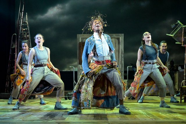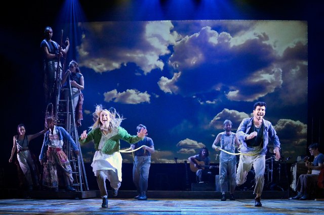 A band of several, mostly string players, is scattered around the stage periphery throughout. Ian Ross’s always interesting original music helps propel the plotline. With an eclectic mix of British folk, pop, and other influences, it acts as a major driver in enlivening the feel of the production. Unfortunately, much nuance that the lyrics would provide is lost as they are often indecipherable.