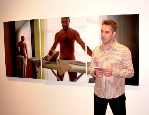 The Bernard Toale gallery has a tandem of provocative shows. David Hilliard, who does photo panoramas combining several independent views and separate photographs. has enjoyed significant success sunce showing with Toale for the past several years with museum shows and impressive catalogue. This show has a strong gay sensibitilty for example a nude man cut off below the waist by an ironing board while a nude lover hovers in the space to the left. It evokes both domesticity and eroticism.