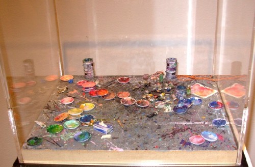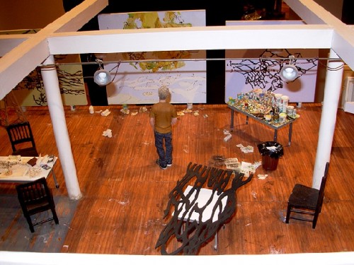 A second body of work at Toale by Joe Fig focuses on meticulously crafted, insightful dioramas of the studios of famous contemporary artists. We see Matthew Ritchie at work in his space. There are also smaller pieces that range from messy to neat painter's studios. These are delicious and absorbing works.