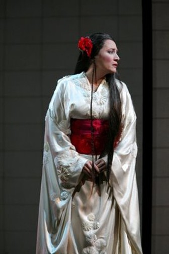 Last fall I found myself seated next to her on at a banquette at Fiorello's restaurant across from the Met. After a brief back and forth about who was going to remove whose big bag, Ms. Racette offered to remove my companion's wallet. The four of us Beth Clayton, her partner, was dining too --had a wide-ranging, informative and often hilarious conversation about "Dr. Atomic," "Don Carlo", James Levine, and Anthony Mingella, the director of "Madama Butterfly" in which Racette gives a stunning performance.