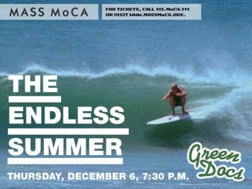 (North Adams , Massachusetts) - MASS MoCA's Thursday night Cinema Lounge series, Green Docs, kicks off on December 6, 2007, with Bruce Brown's classic surfing documentary The Endless Summer. Green Docs brings a slate of green-themed documentaries to the screen in MASS MoCA's cozy Club B-10, offering varied perspectives-alternately hard, humorous, and wistful-on the wide-ranging environmental issues that dominate the news and increasingly shape our world. Each film is followed by a Q & A with filmmakers and activists, offering more in-depth information about the issues introduced.