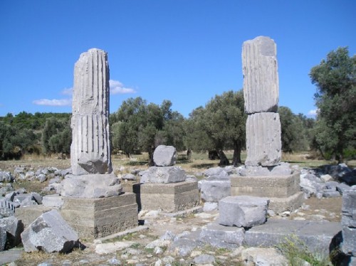 Teos was the last Ionian city we visited before my departure. Some of its recently excavated sites include the Hellenic wall and the stage of the main amphitheatre. In the center of the archeological site is the temple of Dionysus, the most famous edifice in Teos. Under the protection of Dionysus, the patron saint of drama, the Artists of Dionysus, the professional guild of actors and musicians who supplied performers for hire at festivals all over the Greek world, enjoyed universal privileges, such as freedom from taxation and military service. Rich in culture, the city became well known as a trading center for fine arts and crafts.