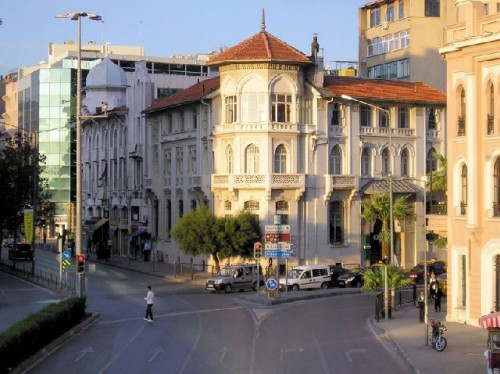 Descending from the hill to the flat terrain, my friends wanted to show me other parts of Izmir. Evin and I walked through the old Jewish quarter to Kizlaragasi Han, an Ottoman commercial structure, where we ambled along a colorful stretch of small jewelry, embroidery and textile shops. We had tea in the courtyard of the Han, and then walked to Kordon, Izmir's attractive seaside promenade, ending with a brief stroll through the mall at the pier, lined with Western luxury shops. Across the way modern apartment buildings with air conditioning units on every floor shared the urban landscape with traditional Ottoman architecture.